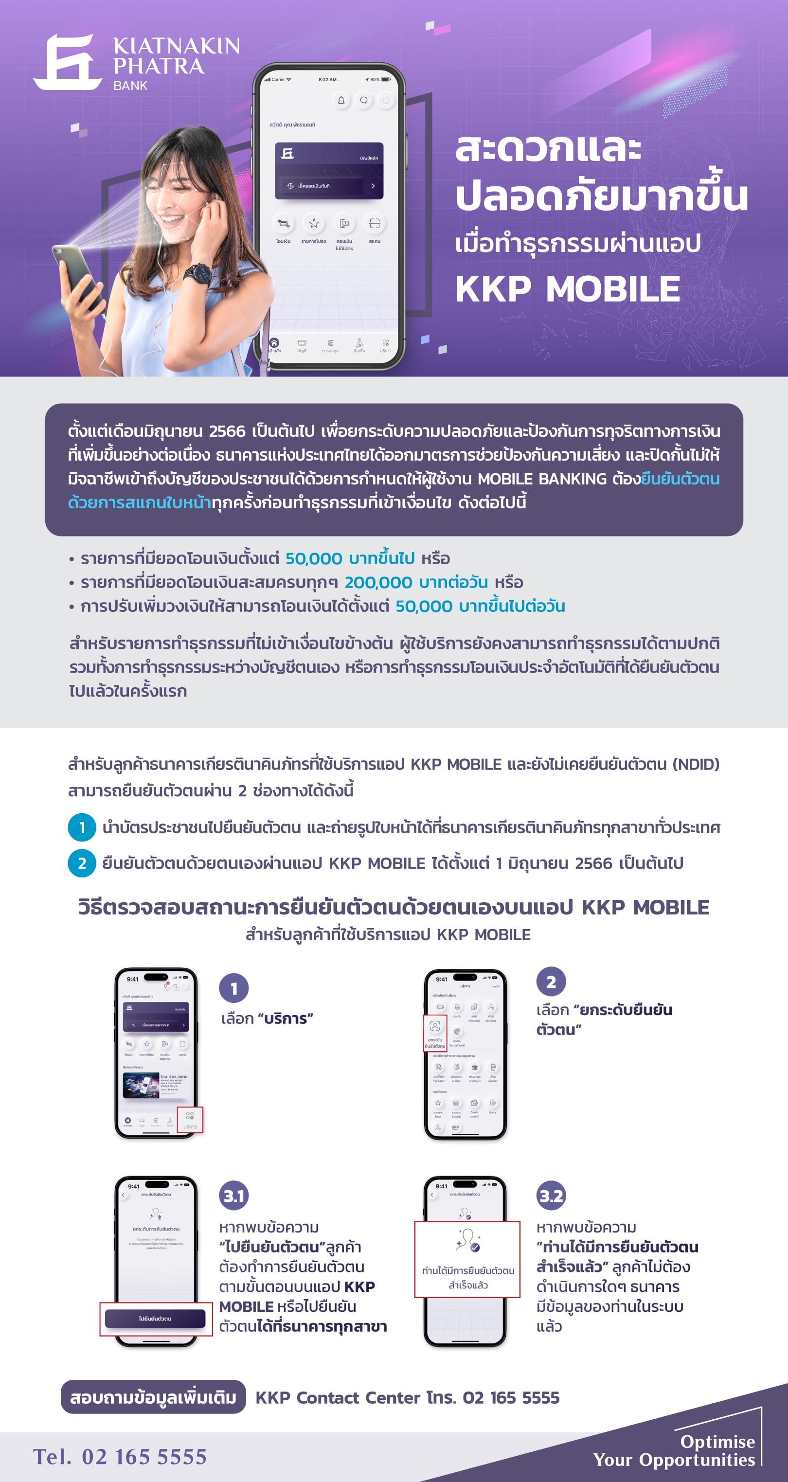 ยืนยันตัวตนด้วยตนเองผ่านแอป KKP MOBILE