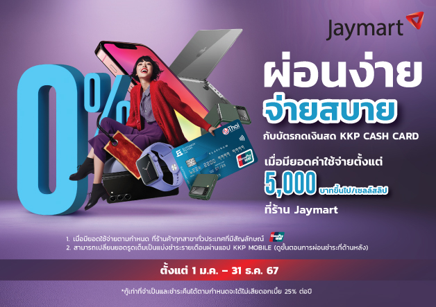 | ชำระคืนขั้นต่ำเพียง 3% ของเงินต้นรวมดอกเบี้ยหรือไม่น้อยกว่า 300 บาท | |