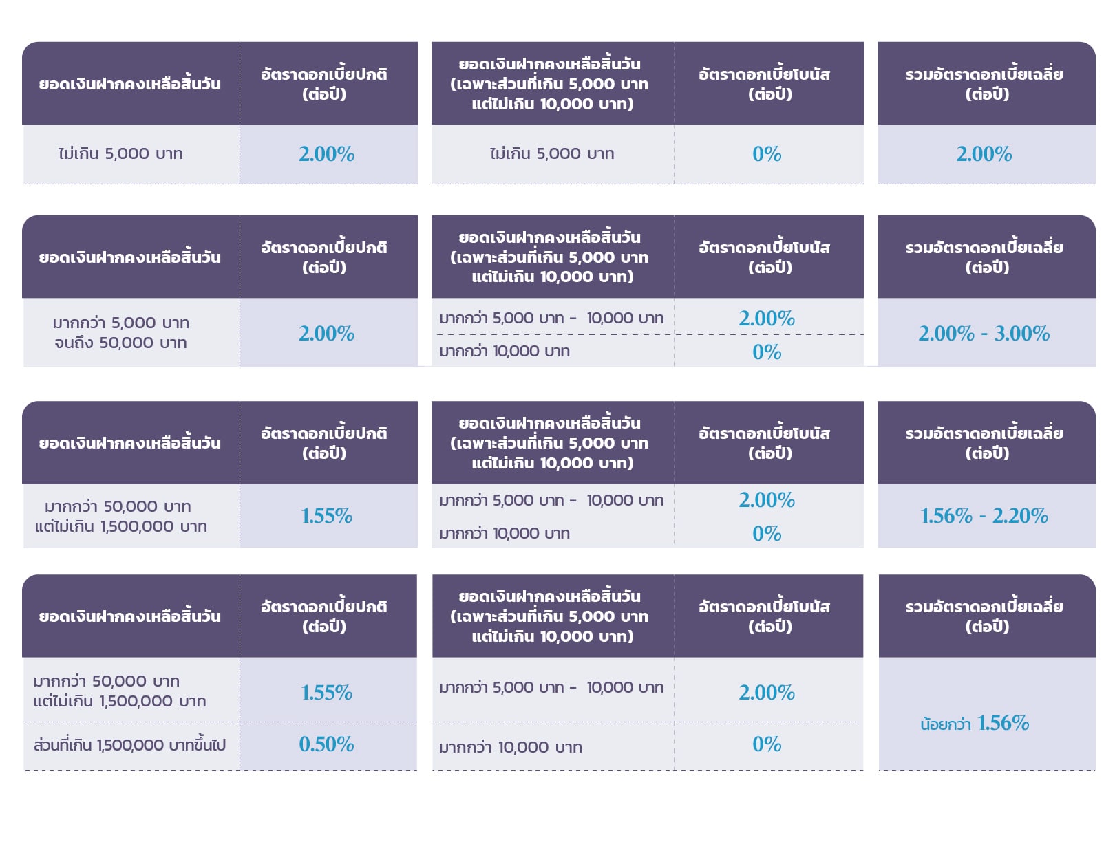 | เปิดเท่าไหร่ก็ได้ ไม่มีขั้นต่ำในการเปิดบัญชี | |