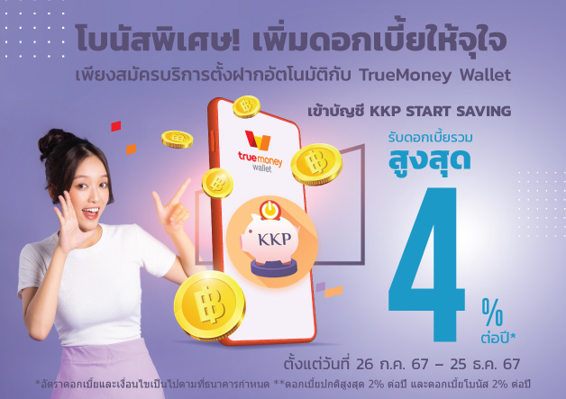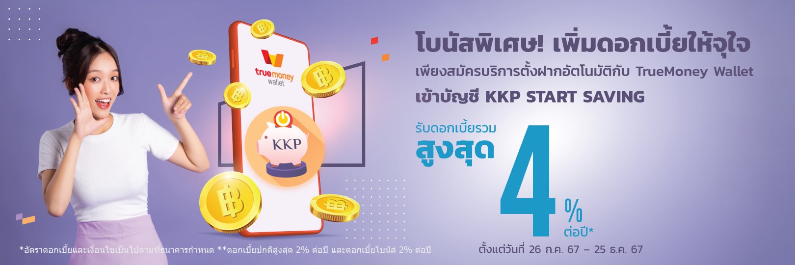 | 1.ฝากเงินเข้าบัญชี KKP Start Saving | ไม่จำกัดจำนวนเงิน | ไม่จำกัดจำนวนเงิน |
