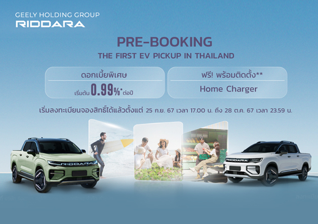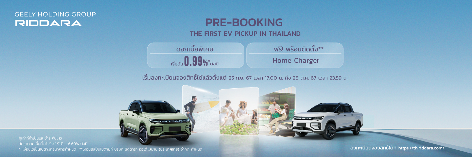 หมายเหตุ : การจองสิทธิ์ RIDDARA PRE-BOOKING ยังไม่ถือเป็นการยืนยันการจองซื้อรถยนต์